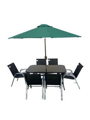 Designed for family gatherings, barbecues, or simply relaxing with friends, this set includes a large rectangular steel table and 8 comfortable chairs. The table is crafted from high-quality, durable steel, ensuring that it can withstand the elements and provide a long-lasting surface for dining and entertaining. The chairs are designed for comfort and are perfect for lounging or enjoying a meal outdoors.