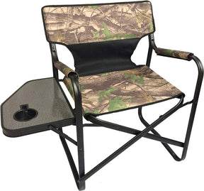 Classic “Director’s Chair” with special camouflage design. Matte black coated frame a adds to the superior finish.