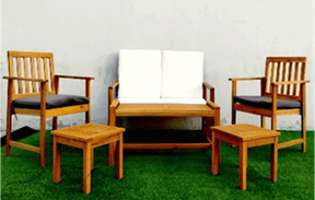 Has a sitting capacity of 6 people Product is affordable and has a compact good quality Upholstered in premium quality linen polyester fabric with an inner wooden frame of pine and eucalyptus.